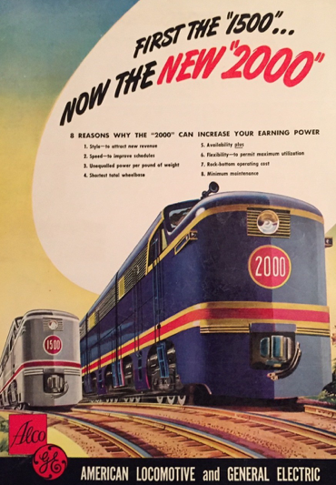 (April 1946) introducing Alco's new "1500" series streamlined locomotive.