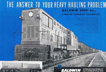 advertisement (October 1948) announcing Baldwin's six-axle, 2000-hp transfer locomotive