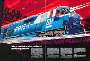 | EMD's New GP15-1 2--page, full-color magazine spread