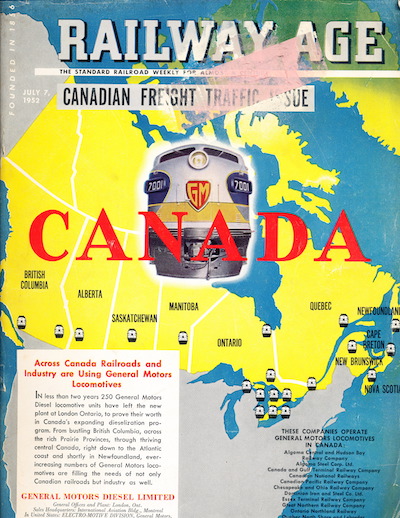 (July 1952) identifying railroads with new Canadian-built locos (R. Craig collection) |
