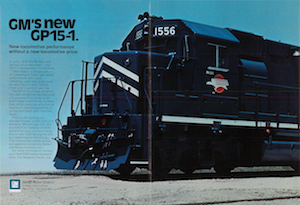 spread highlighting the advantages of C&NW's new GP15-1 (Ted Grumbine) |
