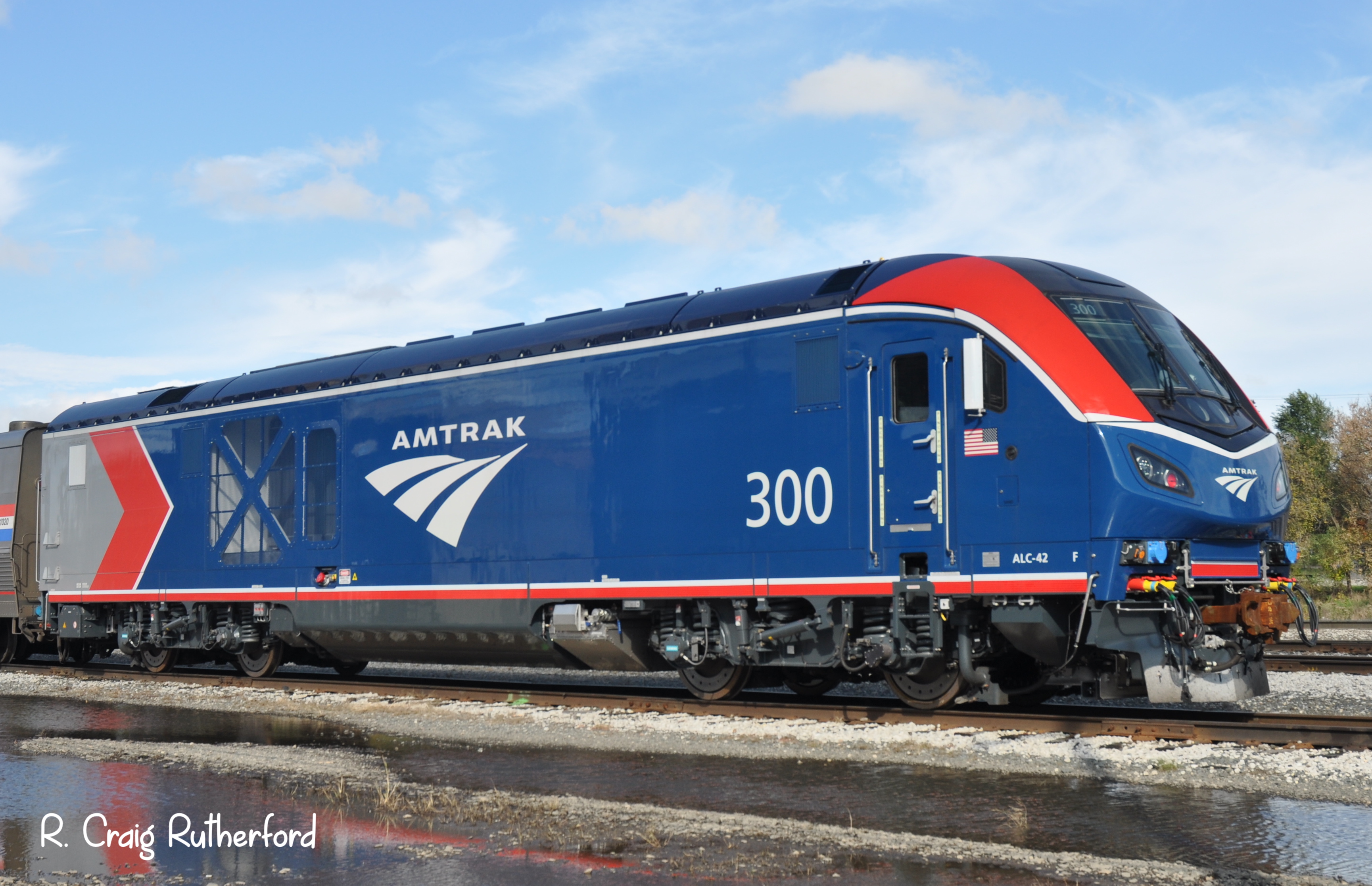Amtrak #301 wearing "Day One" scheme at Jackson, Michigan (R. Craig photo) | |||