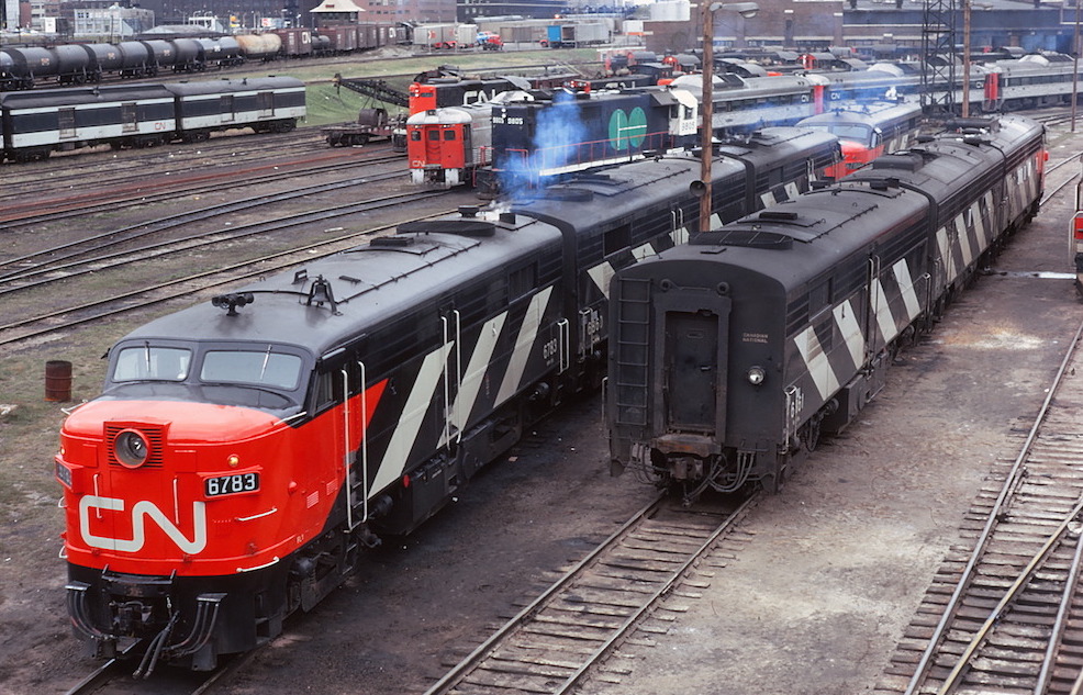 That success was followed by several more FPAs at Canadian National's Spadina Terminal. A very photogenic CN FPA4 #6783 provided a wow factor while scores of CN F-units, geeps, switchers and RDCs, along with GO Transit units waited in a supporting role. |