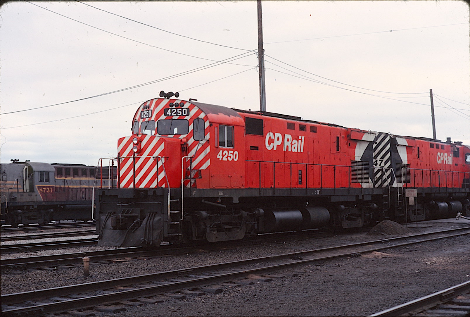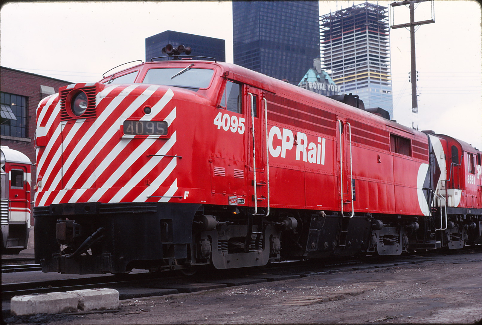 the background, CP FPA2 #4095 looked splendid wearing the railroad's new multi-mark attire.