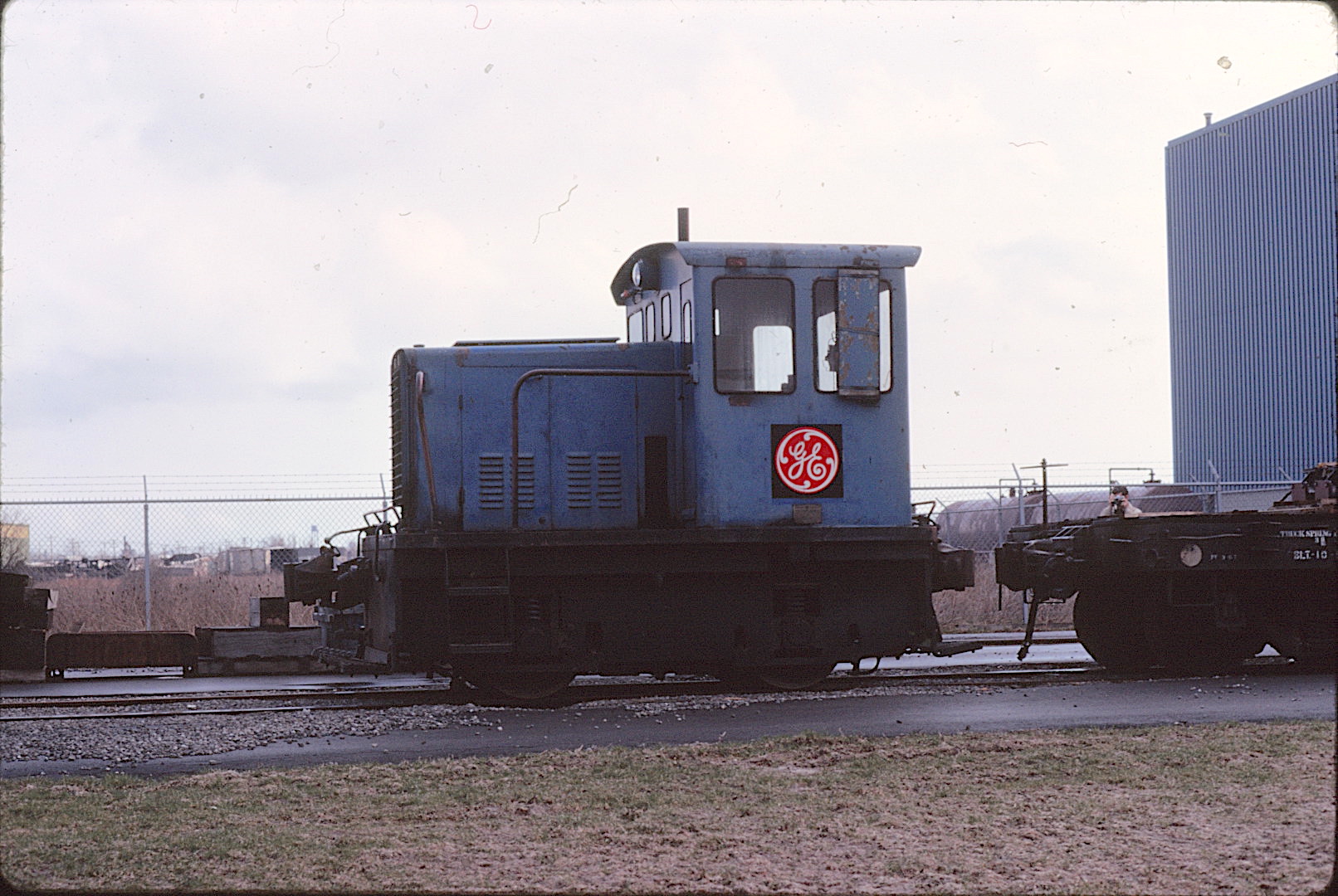GE supposedly had an early 23-ton model further north in Tonawanda; it too was on our hit list. The small end cab was easy to locate and photograph. Built in August 1941 (c/n 15008), the unit had originally worked the company's Everett, Massachusetts complex. | |||