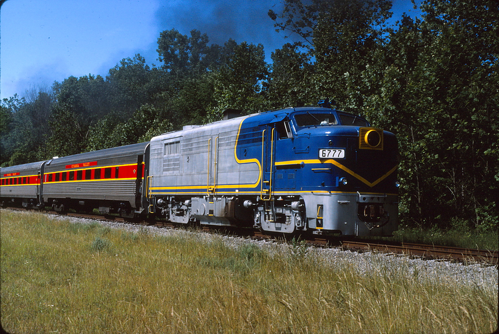 VIA management chose an attractive, forward-looking image for itself. The new blue and yellow corporate attire nicely accentuated the powerful styling of the high-speed MLWs and suggested that train watching along the Montreal-Ottawa-Toronto-Windsor corridors was not likely to lose its excitement in the future. However, the FPAs tenure would be cut short. The Canadian Ministry of Transportation declared that beginning 1 April 1989 only those locomotives equipped with RSC safety control equipment would be permitted on the point of VIA passenger trains. The government edict meant VIA’s fleet of MLW-built FPA/Bs would be delegated to the trailing position on trains, or even worse, retired. It would surely be the death knell for the four-axle cab units that had polished CN/VIA rails for more than three decades. Fast forwarding to 2017, nearly a third of the 34 FPA-4 cab units that left the Montreal plant nearly 60 years ago still survive; many have starring roles on excursion lines, dinner trains, or at museums across the lower 48 states and in Canada. Trains Magazine once opined that the Canadian-built FPA4s were -- "living legends." You'll get no argument here. (R. Craig photo) |