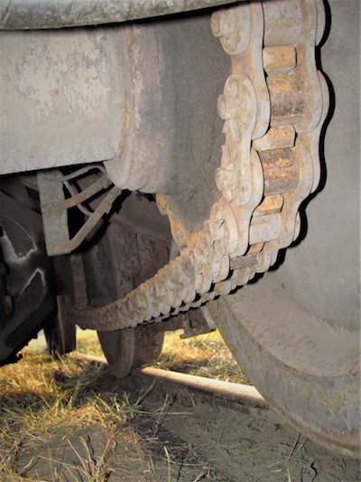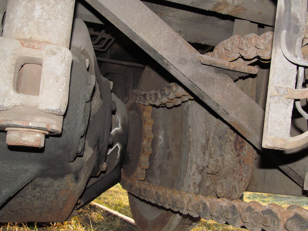 ![]() Gear reduction, drive sprocket and chain to outer axle of truck |