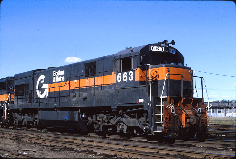 ![]() Boston & Maine (Guilford) #663 at South Portland, Me on 1 July 1991. John C. Benson photo |