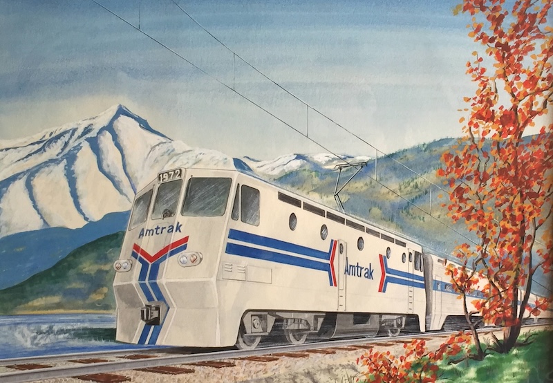 Nick Zullo another talented EMD artist depicts a proposed electric motor running along Amtrak's heavily trafficed "Northeast Corridor."" The quasi-public agency has devoted considerable time and money over the years to find the ideal replacement locomotive. (Greg Palumbo collection)