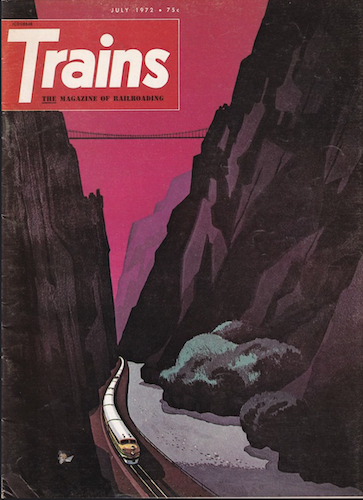 Here is another of Bern Hill's drawings that appeared on the cover of Trains Magazine. This one depicts the California Zephyr snaking through the Rocky Mountains. (Trains Magazine Archive)