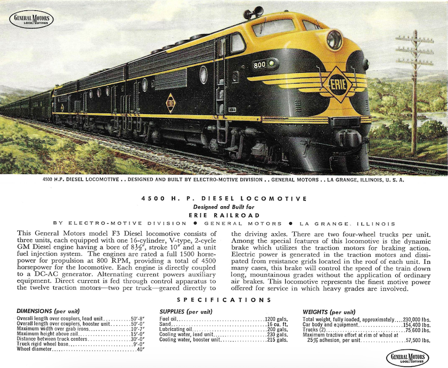 spec cards during the 1940s and early-1950s for its F-series locomotives. The cards have a