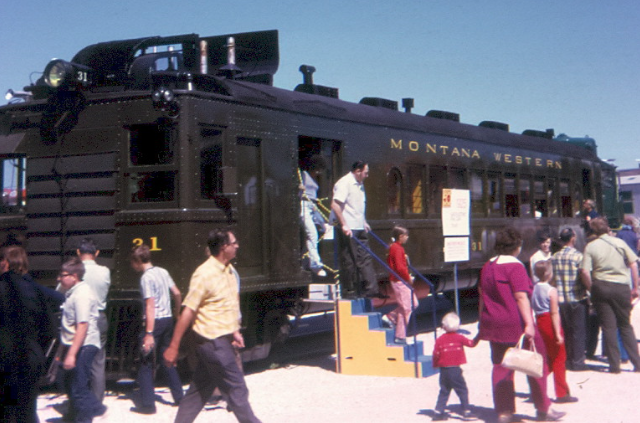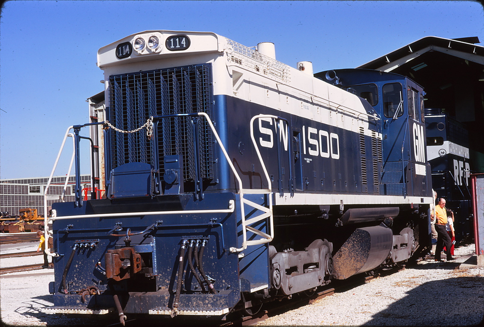 ![]() EMD's SW1500 & SW1000 models were the first switchers to be powered by the builder's new V12-645E engine. SW1500 #114 pictured here is one of nine such units (#106-114) to wear a variant of the company's standard blue & white demonstrator attire. Built mid-way through 1971, the locomotive was used primarily as an in-plant switcher and had very few opportunities to showcase it's strengths to potential buyers. (R. Craig photo) | ![]() The year was 1925, when a three-year-old Electro-Motive Corp. in Cleveland, Ohio built this gas-electric rail motor car. The purchaser of the 32-ton machine was the Great Northern which assigned road number 2313. Driven by a Winton gasoline engine, the rail car worked for the GN until 1939, when it was acquired by the Montana Western as their #31. The oldest surviving EMC transportation product was borrowed from the Mid-Continent Railway Museum for the 50th Anniversity Open House. (Gordon Schmidt photo) |