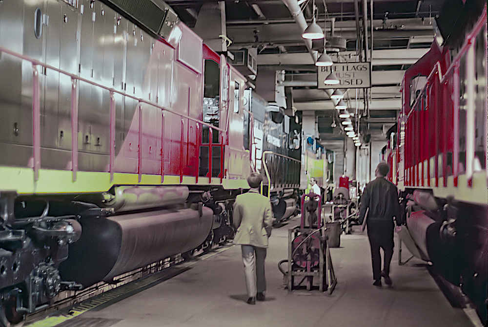 Electro-Motive Division, the leading manufacturer of diesel locomotives during the 1960s, 70s and 80s, held several such open house events for employees and the general public. The first one I attended was held on a dreary-looking day in May 1966. It was followed six years later by the 50th Anniversary celebration in September. With the help of Marty Bernard and Bill Howes, we'll revisit the first two of the four events here in part 1 of "EMD Open Houses." Part 2 of the photo profile (next month) will focus on the open house celebrations of 1978 and 1989, which is more commonly referred to as EMD's 75th Anniversary. Revised and expanded: 2 May 2019 |