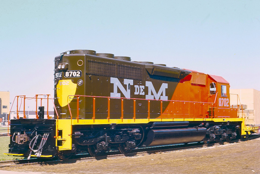![]() It's pretty evident that EMD's six-axle SD40-2 model was well liked by managers at the Nacional de Mexico; the railroad purchased 103 of the 3000-hp locomotives between 1972 and 1986. They were numbered 8700-8798 and 13001-13004. (Bill Howes photo) | ![]() Built in 1949, #1518 was ex-EMD Demonstrator #100 and the first GP7; it was sold to C&NW. Days after the above picture was taken, the geep was rebuilt as GP7R #4311. The loco has been restored to its as-delivered condition at the Illinois Railway Museum. (R. Craig photo) |