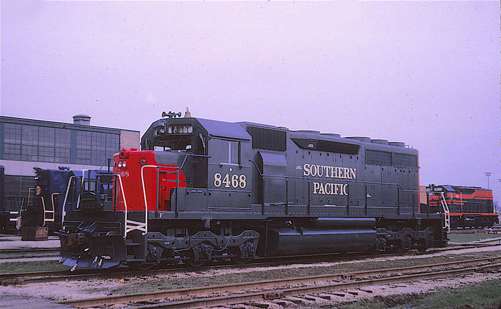 ![]() EMD delivered 89 SD40s to the Southern Pacific, including the #8468 in April 1966. The six- axle loco was rebuilt as part of the railroad's capital revitalization program and renumbered SD40R #7366. Conveyed to the Union Pacific in 1996, it was retired in 1999. (R. Craig photo) |