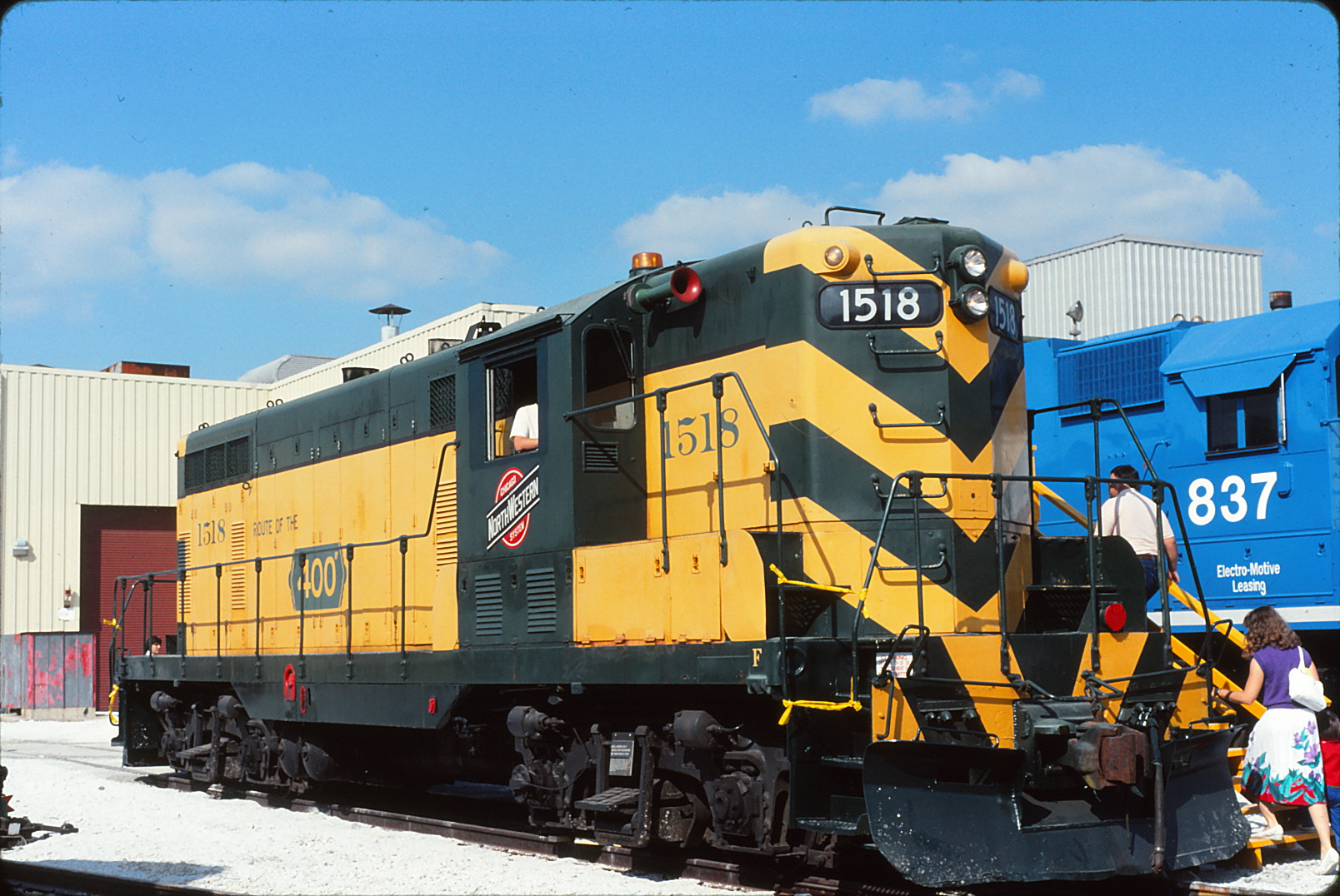 ![]() Chicago & North Western #1518 was the first GP7 built and ex-EMD Demonstrator #100; it also has the dubious distinction of being the only locomotive to appear at multiple open houses, wearing the colors of its original owner.(R. Craig photo) | ![]() The winners by a nose -- well, not exactly. In terms of sales, all of the locomotive models pictured were well embraced by the railroad industry, except the GP60. From left to right, the models are GP7, GP38, GP40, SD40, GP60 and SD45. (R. Craig photo) |