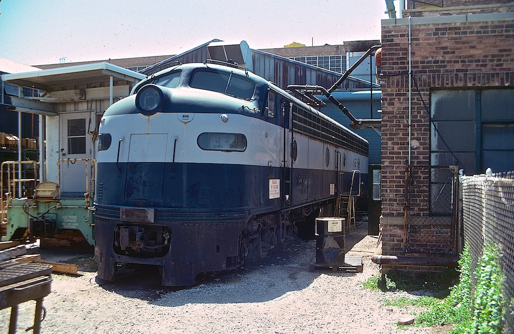 ![]() Southern Railway GP40X #7000 stands beyond the plant while undergoing one of several 645F engine load test procedures. (William Johnson photo) | ![]() While out "exploring," photographer Bill Johnson encountered an ex-RF&P E8A which has the exhaust system tied in to one of the plant's out-buildings. |