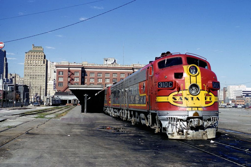 ATSF F7 310C on the point of Amtrak’s Texas Chief #16, is ready for its 12:20pm departure for Temple, Ft. Worth, and Chicago from Union Station in Houston, TX on February 3, 1973 . (Ralph Back photo) |