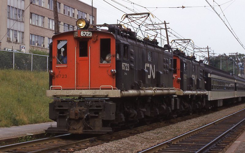 CN 6723 at Departing Central Station in Val Royal, Quebec on 3 July 1970 (Bill Linley photo) |