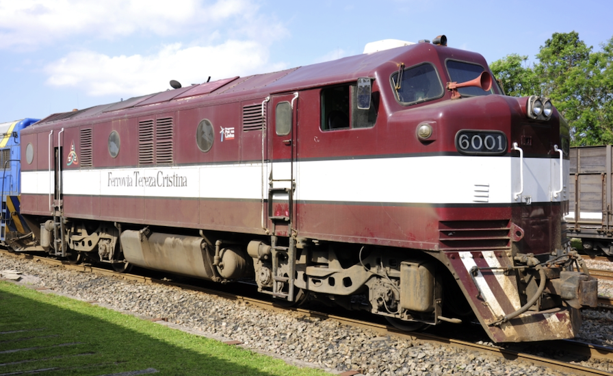 ![]() Tereza Christina Railroad #6001 was purchased second-hand to haul coal from a mine to a power plant on an isolated narrow-gauge line in southeast Brazil. (Diogo Seger Luciano photo on 28 September 2011) |
