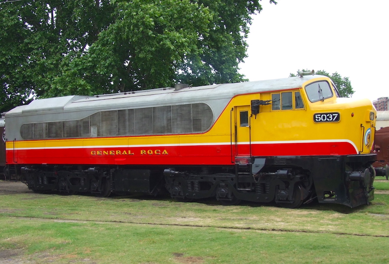 ![]() Baldwin's export cab unit featured a "wind-splitter" nose, and a turbo-charged eight-cylinder diesel engine with a 1500-hp output. (Roberto J. Yommi photo at Buenos Aires in 2004) |
