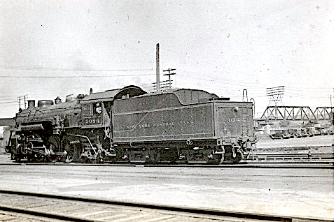 Pacific 3084 has cut off the "Day Express" consist on arrival at Peoria and will head for the