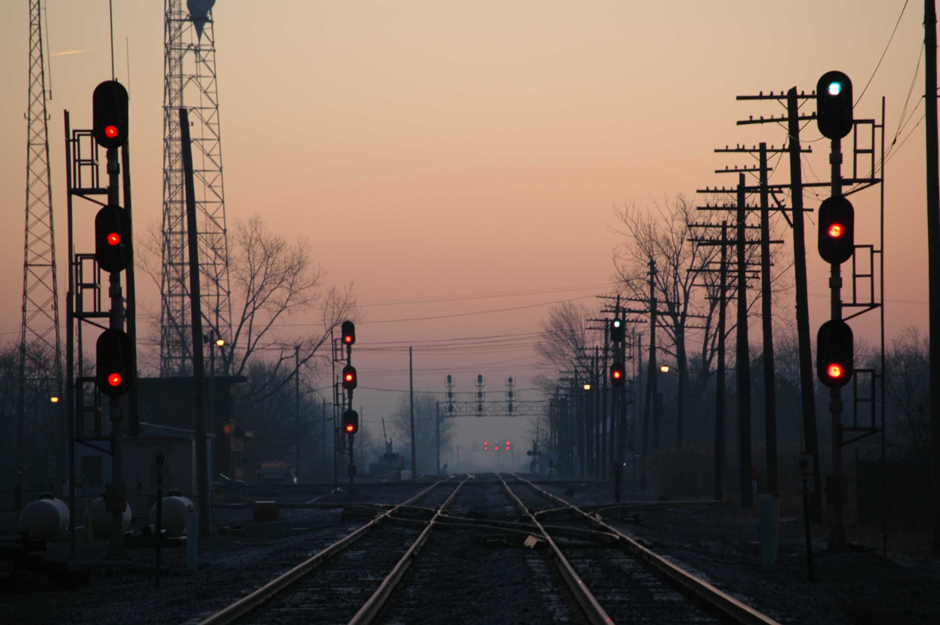 smog at the surface. You are looking east along the old Baltimore & Ohio main line; the