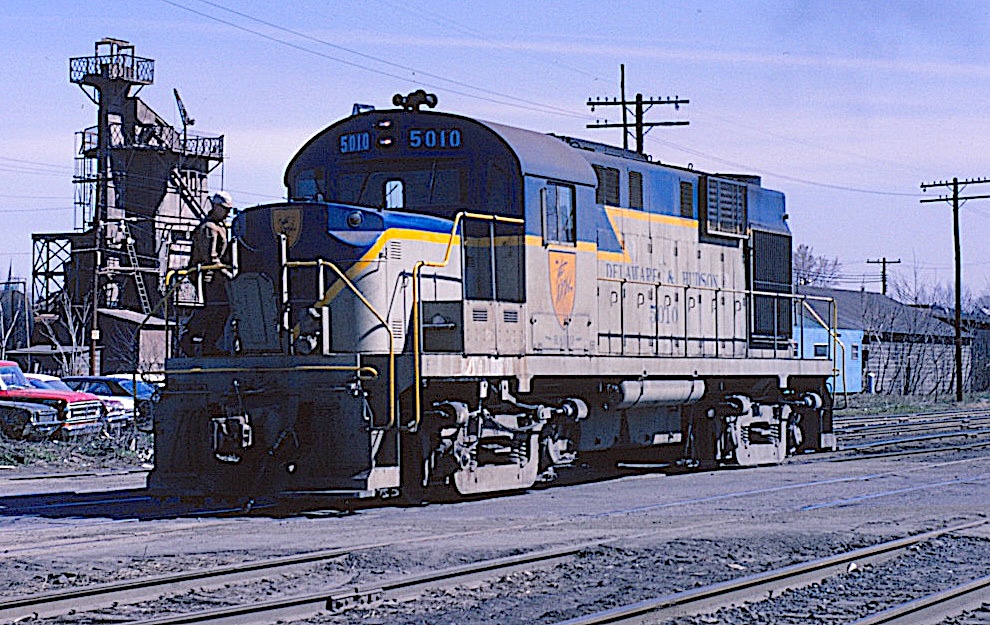 Thanks to fellow railfan and slide trader Bob Wilt we had good directions to the engine facilities in Scranton, Pittston and Wilkes-Barre. Hence, the Delaware & Hudson yard and engine servicing tracks in Wilkes-Barre were simple to find. There to greet us was a quartet of D&H U30Cs and U33Cs. D&H U33C #752 had been originally Erie Lackawanna #3302, was swapped along with two GE six motors for a like number of SD45s. D&H lo-nose RS11 #5010 was patrolling near-by. | |