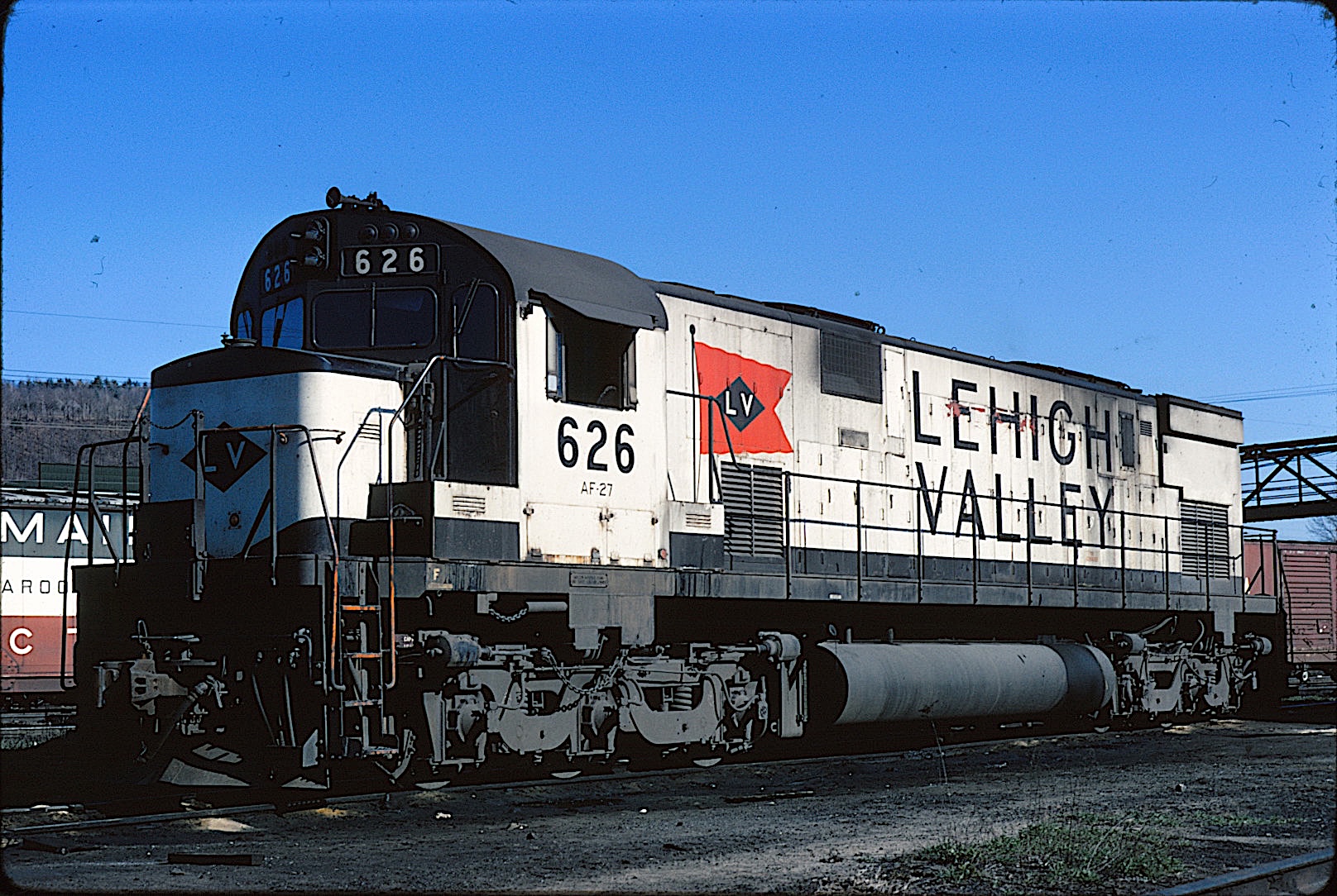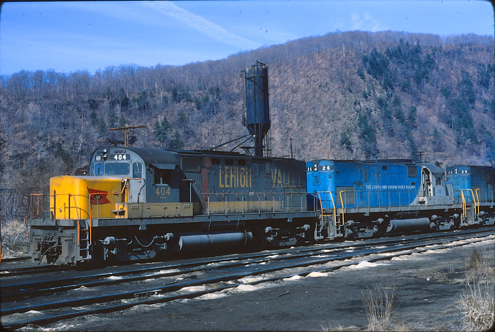 On the way to Delaware & Hudson's modest-size engine terminal in nearby Wilkes Barre, a quick stop at Pittston was made to peruse a trio Alco C420s that included LV #404 and Lehigh & Hudson River #26 and 29. Soon after LV obtained additonal trackage rights, it went searching for some short-term lease units; the L&HR offered the pair of surplus four-axle Alco centuries. |