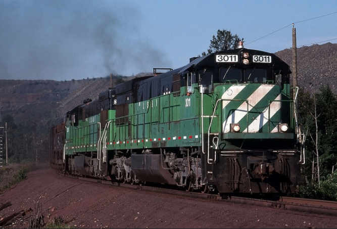 ![]() Upper Peninsula railfans finally had the opportunity to focus on the creations that came from the EMD plants at LaGrange, Illinois and London, Ontario. It was all made possible by Wisconsin Central's 1987 acquisition of the SOO Line. WC #6652 leads a Utah-bound taconite train outside Marquette. (Chuck Schwesinger photo) | ![]() The frequent rumors of "new" LS&I power are real, and the time has come for the old guard (Alcos and early GEs) to stand-down. The replacements arrive in late 1989, and they are proven vetrans who have served proudly for years on Crawford Hill. They wear the cascade green of Burlington Northern and badges that read "Built by General Electric." (Chuck Schwesinger photo) |