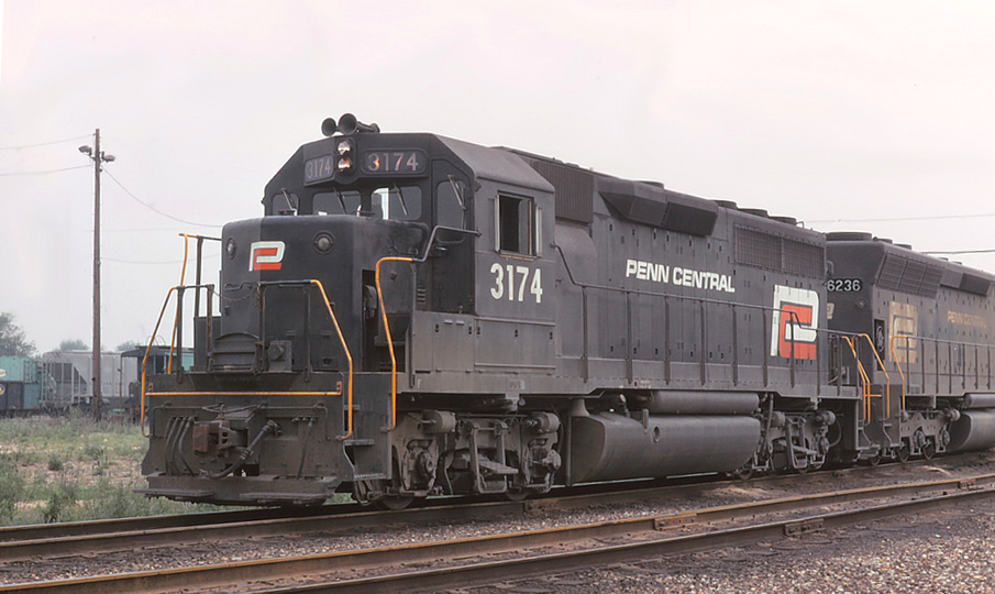![]() GP40 #3174 at Toledo, OH (note: Orangish-red "c") R. Craig photo (2 June 1970) |