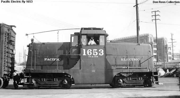 It should be note that the trolley poles on diesel units were not intended as auxilary power, but rather as a necessary means to activate wig-wag and track signals in areas where overhead wires still remained, during the railway's multi-year dieselization. The first locomotives to be so equiped were five GE-built 44-tonners delivered in 1943. Other similarly equipped models were a few Baldwin VO-1000 switchers and class 5200 road-switchers, along with some EMD-built SW1s; all of which were leased from parent Southern Pacific. (PE #1653 photo from Don Ross collection; SP #1009 photo from Craig Garver collection) | |||||||