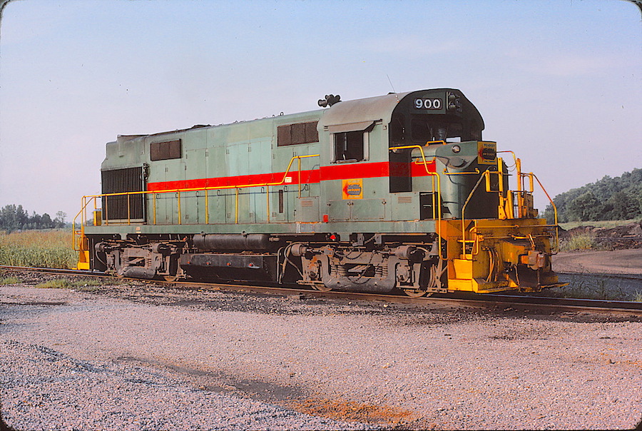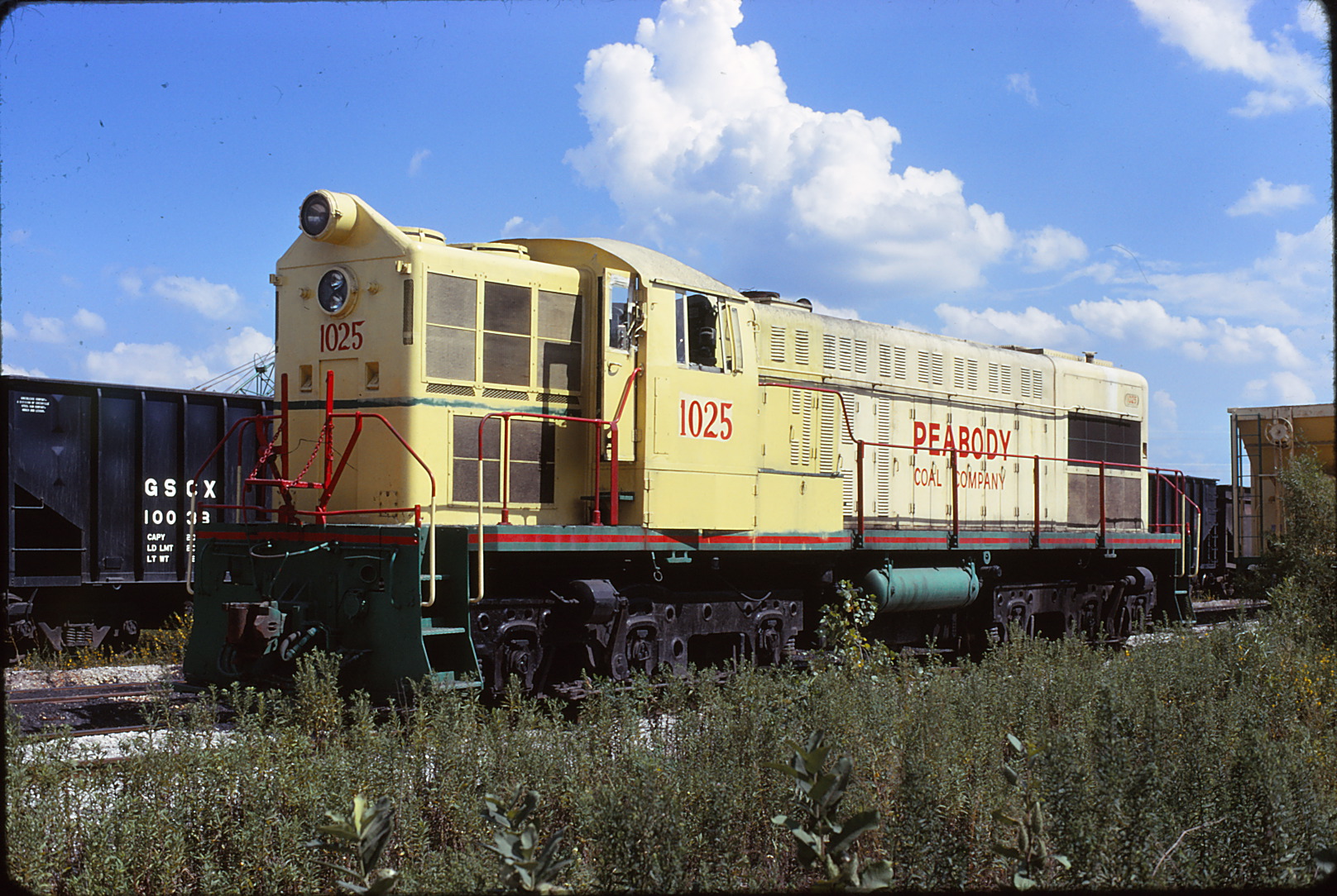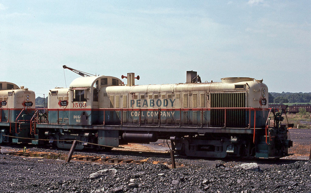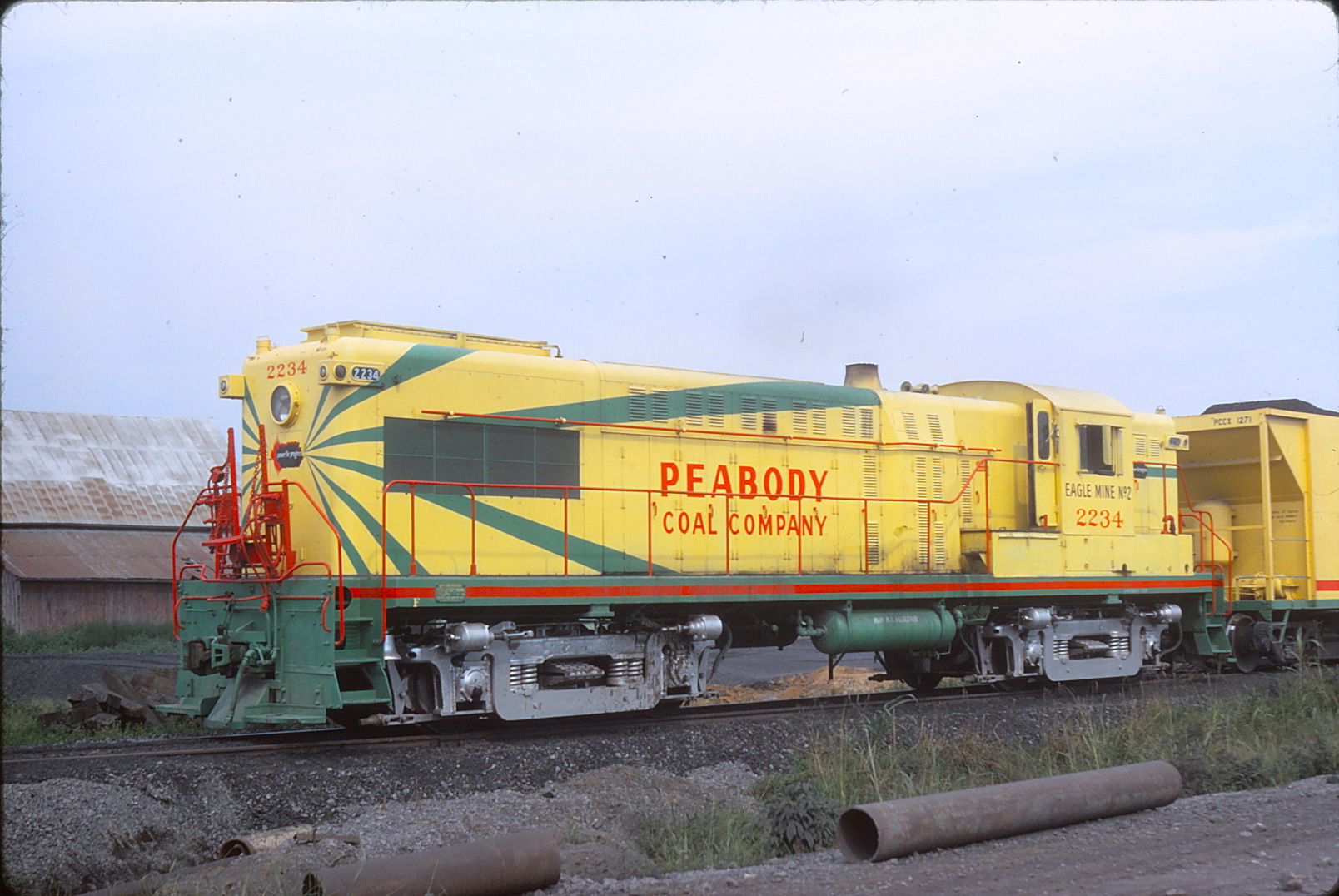Located principally in the southern regions of Indiana and Illinois as well as Kentucky, there possibly was not a more eclectic roster to be found - especially on a per capita basis. Other than a few Geep and SD7/9s, EMD-built units were in the minority. With few exceptions, Peabody made a practice of acquiring other railroad's cast-offs ands mavericks - and most importantly, the strategy was successful. The Joe Brockmeyer photo shows PCC #343 south of Lynnville, Indiana on 7 August 1973. (R. Craig collection) |