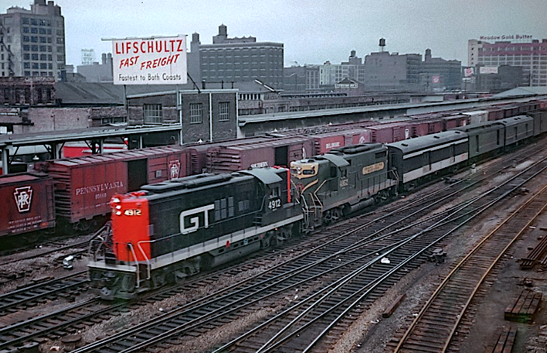 ![]() The power for Rock Island #3 at LaSalle Street Station in August 1963. (Rick Burn photo, Marty Bernard collection). Blank |