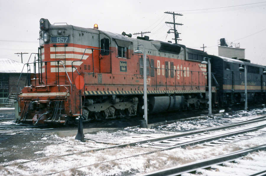 C&S SD7 #857 waits at North Yard in Denver. Deane Motis photo 28 October 1971 |