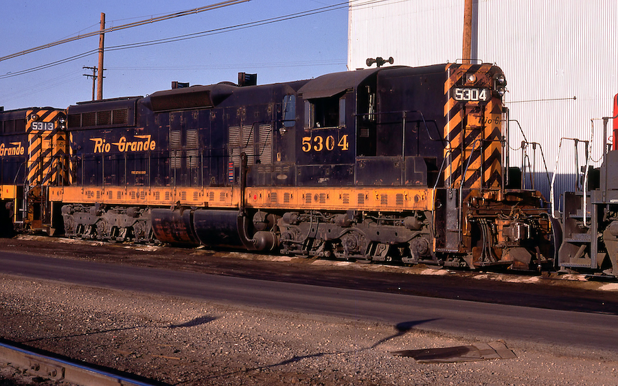 Rio Grande #5304 stands outside the diesel shop at Salt Lake City, Utah. Deane Motis photo December 1974 | Great Northern