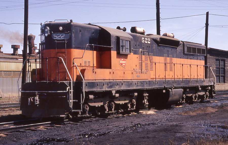 Milw #522 waits near the engine house at Aberdeen, WI. Deane Motis photo 15 April 1973 |