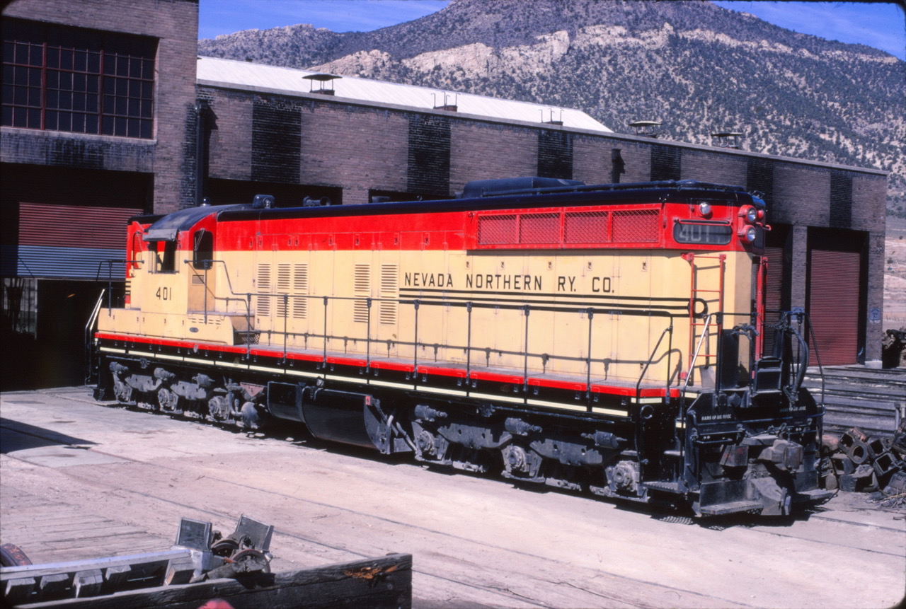 The #401 basks in the sun outside the East Ely, NV shops. Joe Brockmeyer photo on 31 March 1972 | Pennsylvania