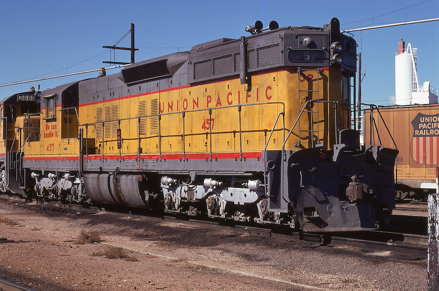 UP #457 (ex-UP 782) which was built in 1953 waits in Denver, CO. Deane Motis photo October 1974 |