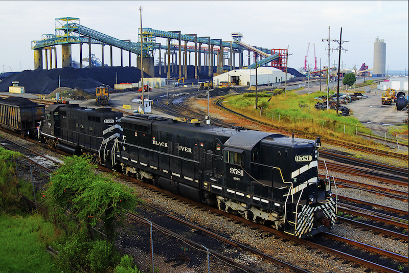 #9581 (nee Central of Georgia 202) works a Virginia coal terminal. John Leopard photo, 2 August 2020 | Bessemer & Lake Erie
