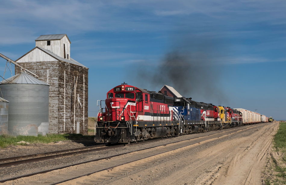 ![]() Columbia River Basin 171 and five stablemates lead a freight consist at Shano, Washington on 6 May 2019. (James House photo) |