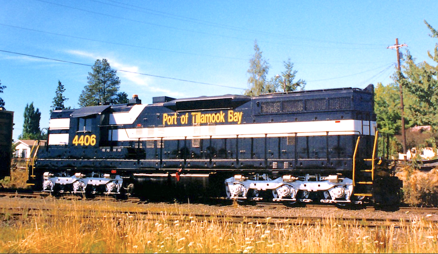 A classy looking POTB #4406 (ex-SP #4406) stands alone at Banks Oregon. John Barget photo, 19 August 1995 |