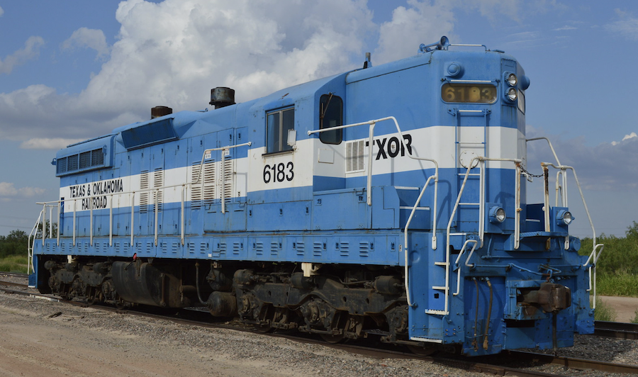 The #6183 was one of two ex-Burlington SD9s working in Sweetwater Texas. CN Southwell photo, 24 August 2015 |