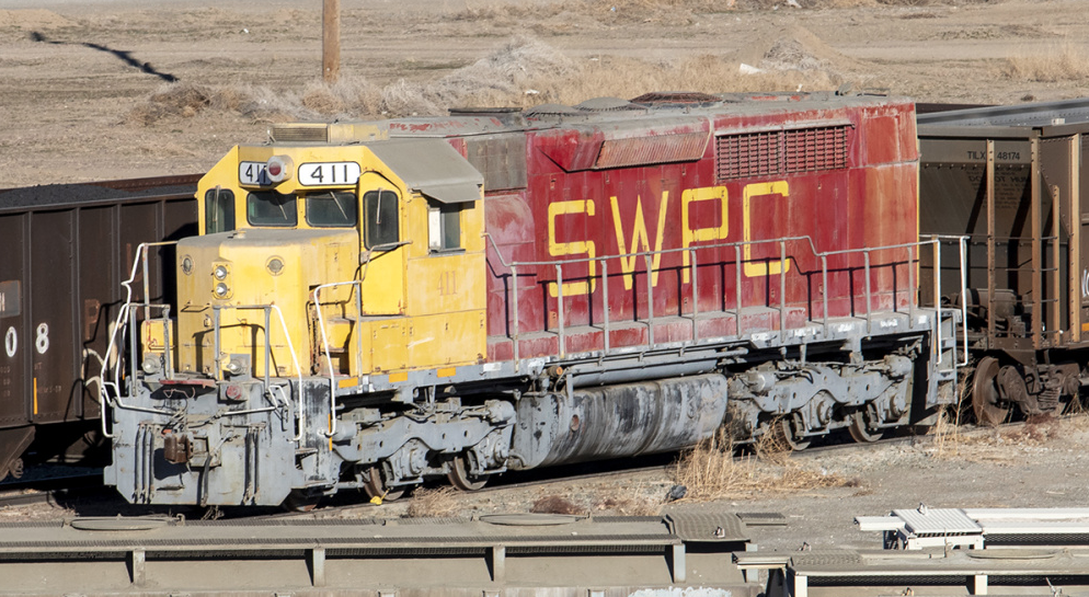![]() Southwest Portland Cement SDP35 #411 at Mojave Northern on 1 February 2020 (Charles Freericks photo) |