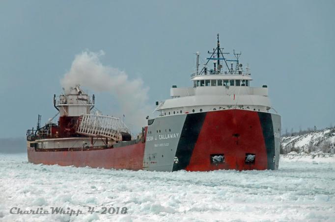 ![]() Ice packs on the Great Lakes slowed traffic and posed a threat to vessel safety. (CNR-owned steamship Cason J. Callaway photo by Charlie Whipp) |