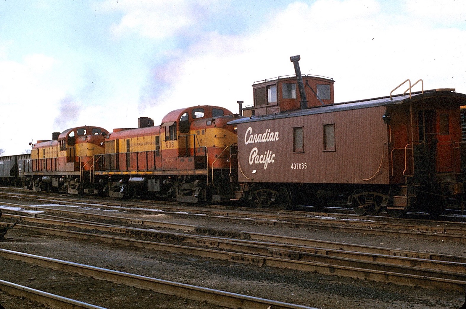 On 1 February 1965, LS&I RS3s #1610 and 1608 departed Toronto Hamilton & Buffalo's Aberdeen yard with a caboose hop. Contrasted to hauling ore trains up and down the rolling terrain of Michigan's Upper Peninsula, it was easy duty. The pair of Alcos had become aclammated to spending winters in the Ontario province or Southeastern Michigan. (Doug Wingfield photo). |