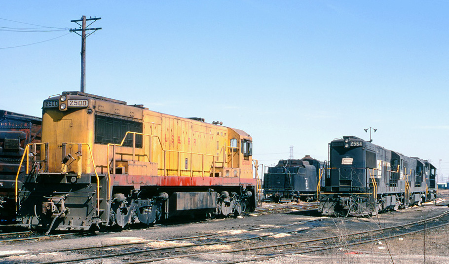 After an eight-year hiatus, Lake Superior & Ishpeming #2500 returned to the Flat Rock (MI)-based DT&I. The U25C was relegated to working the yard and transfer duties, much like it did in 1965. The Penn Central units were not being leased; they were part of a pooled service. (Mike Woodruff photo) |