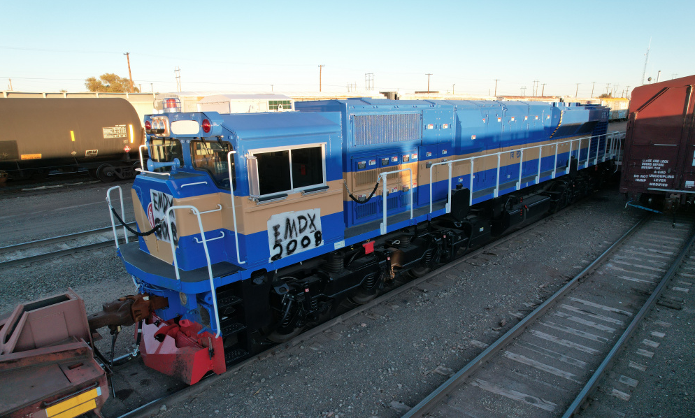 ![]() Built in 1971, the six-axle GE worked at TTCI for more than four decades. After retirement, the 3000-hp DOT #001 was donated to the Pueblo RR Museum, as seen in this March 2020 image. (Craig Walker photo) |