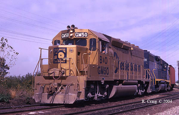 ![]() NYC/PC U25B #2516 and nine friends leads a long westbound coal drag towards Toledo on 2 Dec. 1968. During the newly merged railroad's first year, unusual power consists were the norm. | ![]() Detroit Edison U30C #007 waits at Vickers on 2 Oct. 1973, with a DEEX unit coal train. The UDM trains (Detroit Edison Monroe) delivered southwest Pennsylvania coal several days a week. |