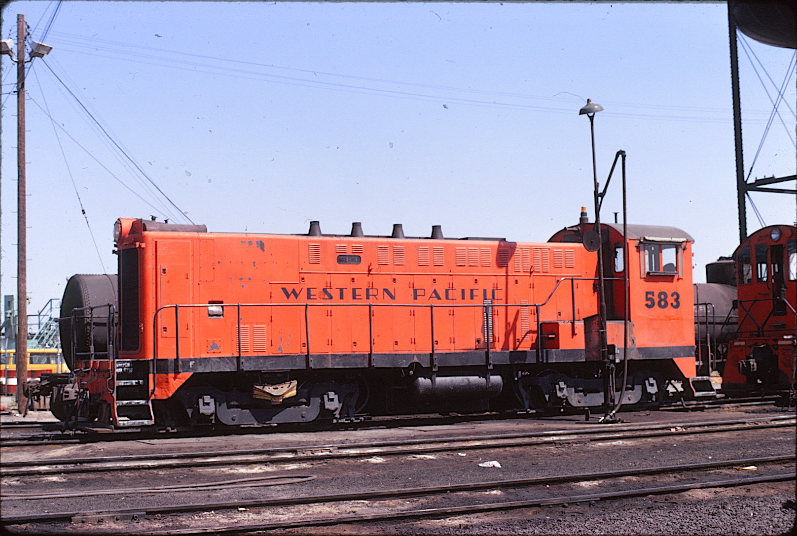 BLW VO-1000 #583![]() During the age of steam, Baldwin-built locomotives were popular on the WP; that was not the case when the railroad dieselized. WP purchased only five diesels from the Eddystone, PA manufacturer -- #581-585. They arrived in the latter part of 1945. (Tom Chenoweth photo at Stockton, CA on 28 May 1972) |